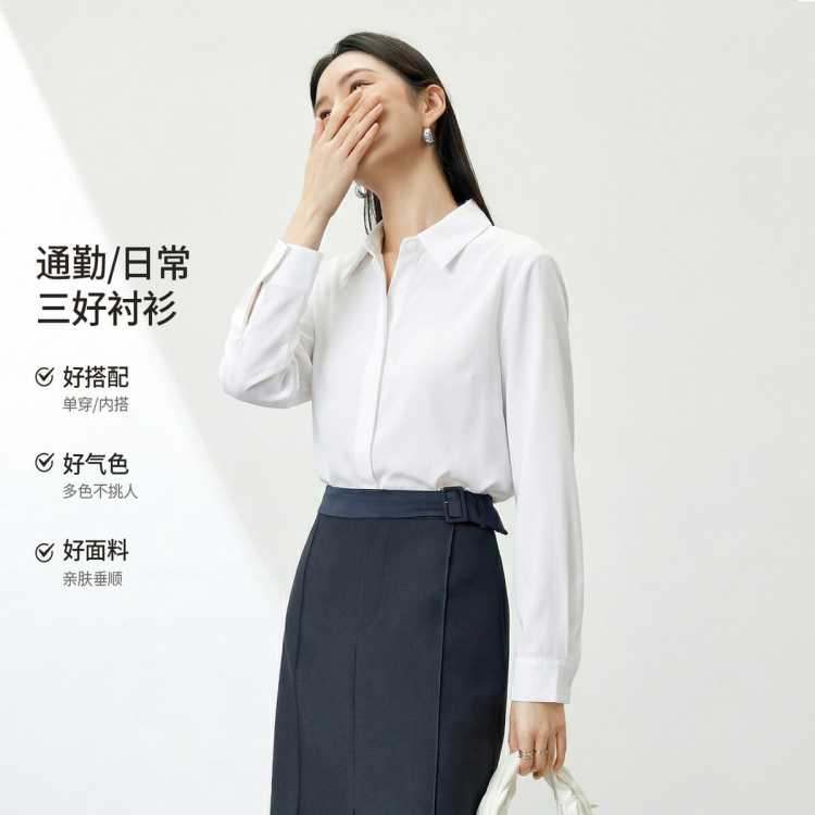 尚都比拉 【通勤百搭白衬衫】春款气质衬衣简约职业装长袖薄款上衣女有大码