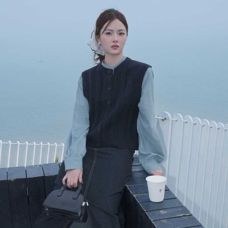 西町村屋 【莱赛尔】春季女式衬衣假两件特色拼接衬衣商场同款