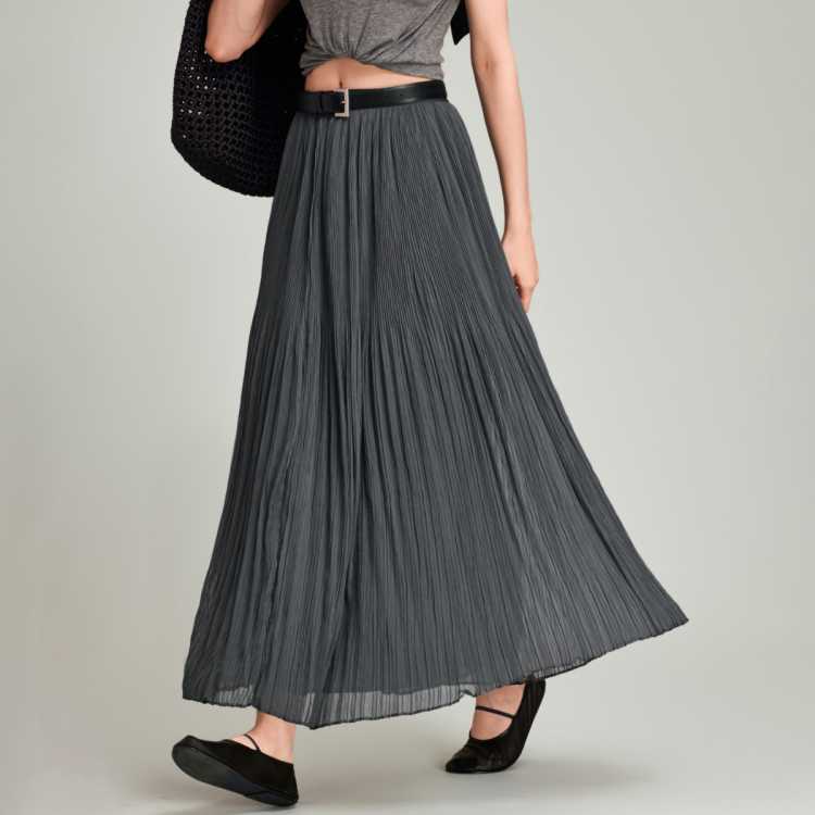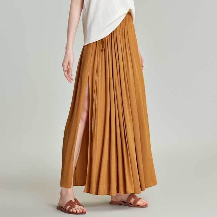 Havva 飘逸感抽绳百褶半身裙灵动开叉垂顺女士雪纺长裙2025夏季