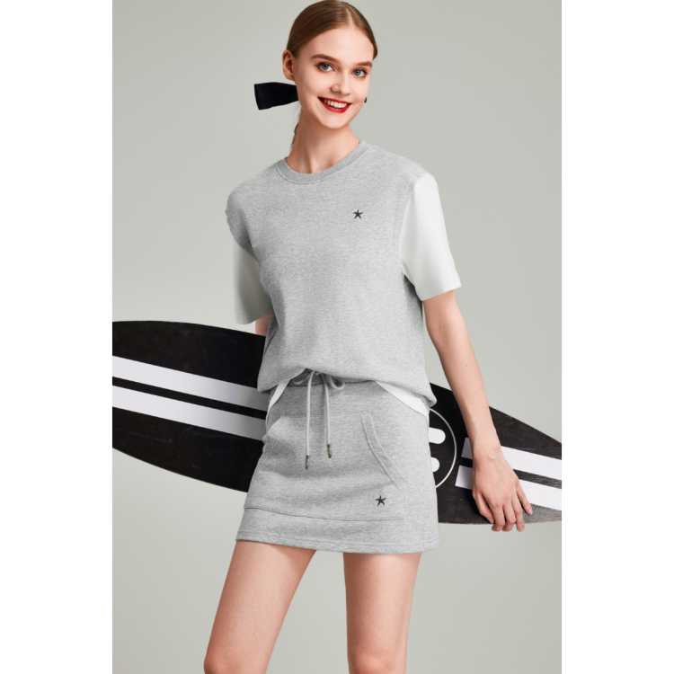 Havva 拼色刺绣宽松假两件短袖T恤裙裤两件套女好穿搭套装2026春夏