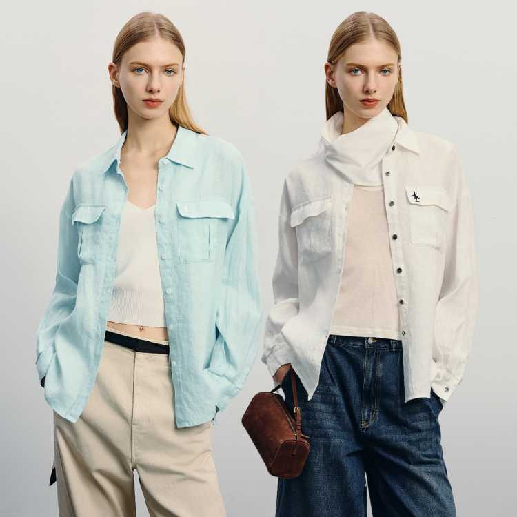Havva 竹节麻感高支棉雅痞长袖休闲白色衬衫女士衬衣上衣2026春季