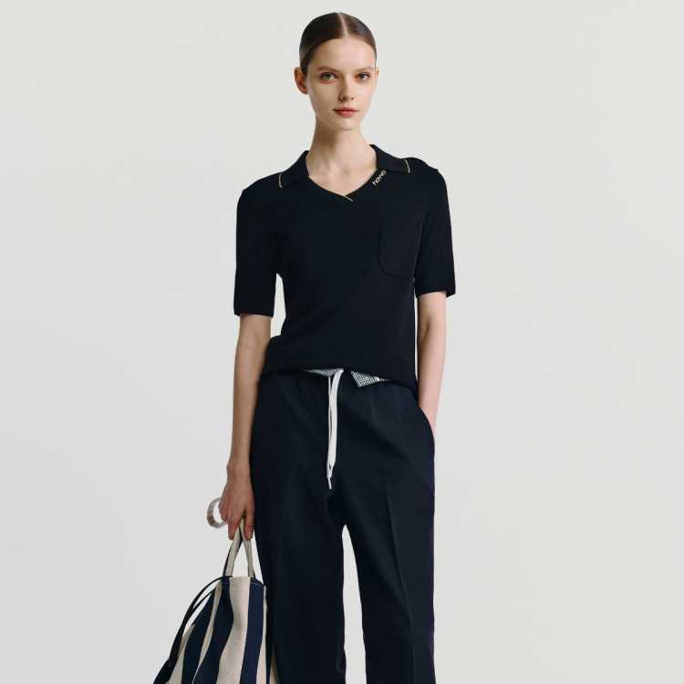 Havva 休闲松弛感翻领正肩短袖针织衫舒适透气女士半袖上衣2025夏季