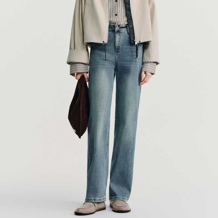 Havva 水洗磨白直筒牛仔裤女显瘦宽松窄版日常好穿搭裤装2026年春季