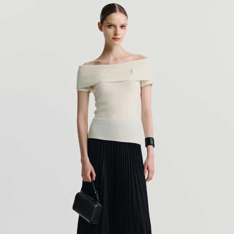 Havva 超好看露锁骨一字领肩短袖针织衫修身显瘦女T恤半袖2026春夏