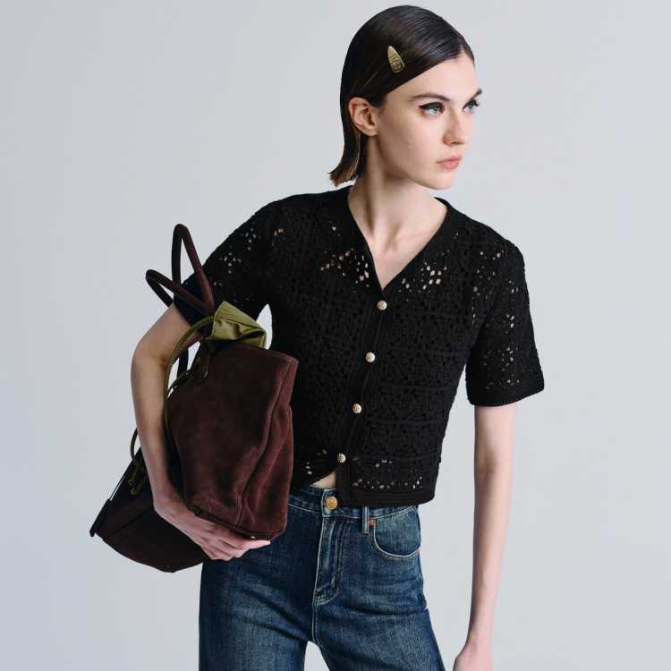 Havva 短袖镂空针织开衫舒适透气外搭叠穿女士半袖上衣2025夏季