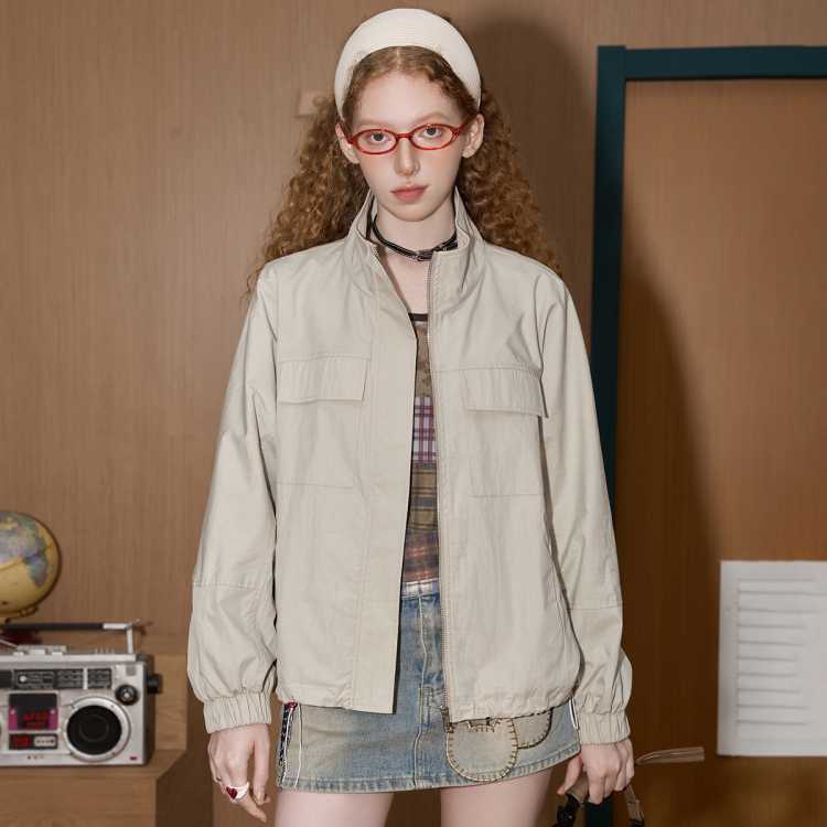 COOLHUT 抽绳立领长袖工装2025秋季女式风衣外套夹克休闲宽松