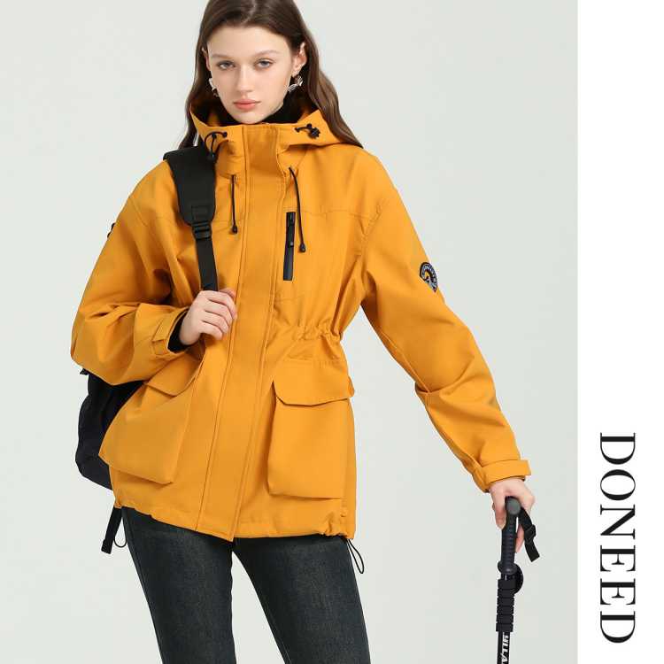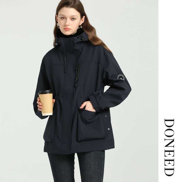 DONEED 2025秋款时尚休闲户外派克服酷帅机能内收腰连帽夹克外套女