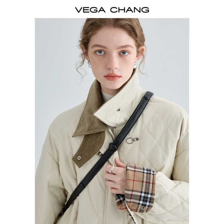 VEGA CHANG 飞机扣棉衣女冬款小个子方领拼接菱格棉服外套保暖洋气