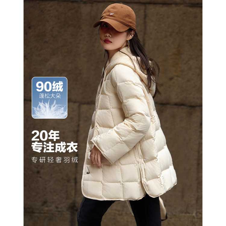 德玛纳 【50D棉感仿记忆】冬季轻奢磨砂绒感90鸭绒渐变格纹羽绒服女