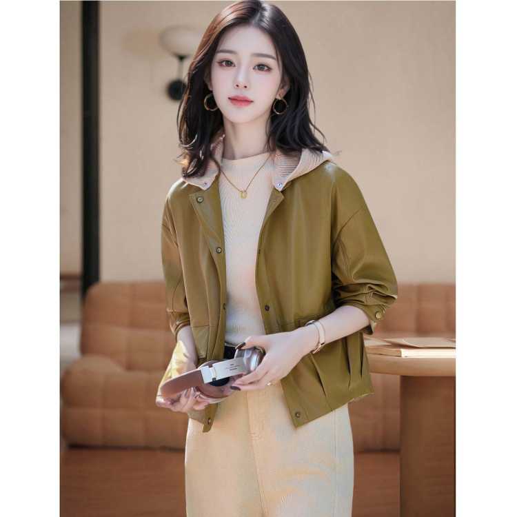 麦诺伊 流行仿皮外套女高级感小个子休闲百搭2025秋季女装长袖连帽