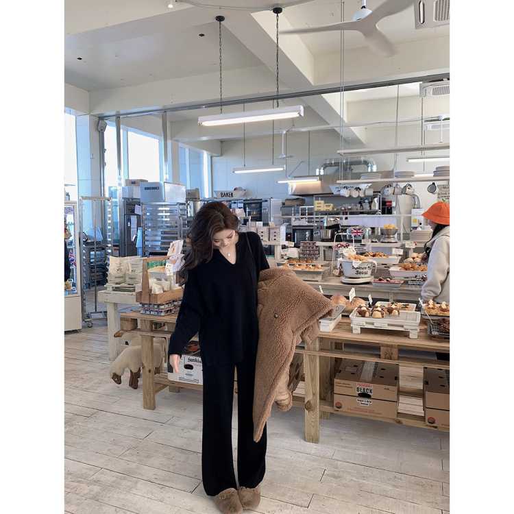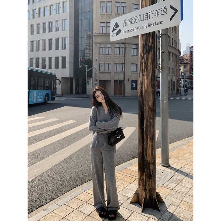 LILY LIKES “懒人乘机”100绵羊毛毛织长裤