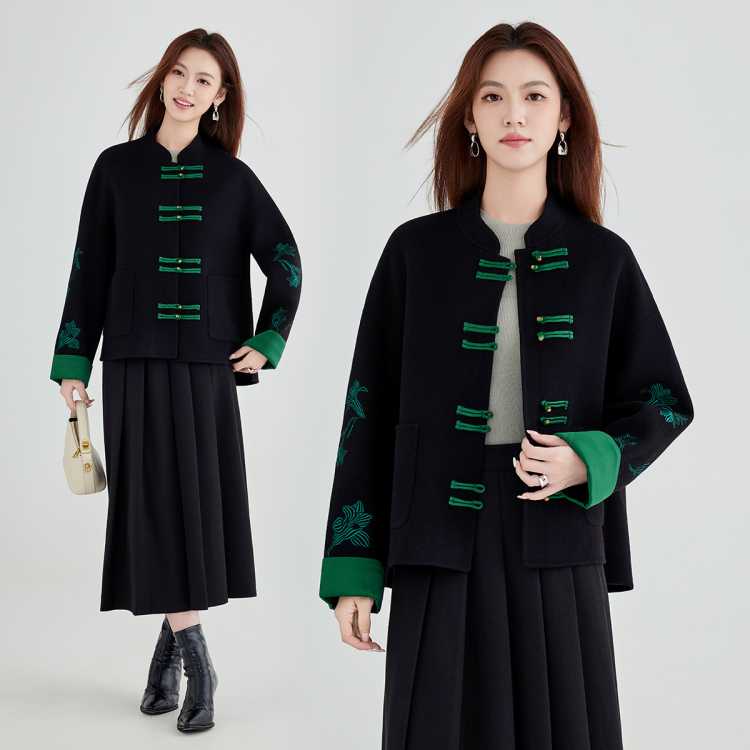 ZUKKA PRO 【100%绵羊毛新中式短款大衣】春秋刺绣女双面呢外套