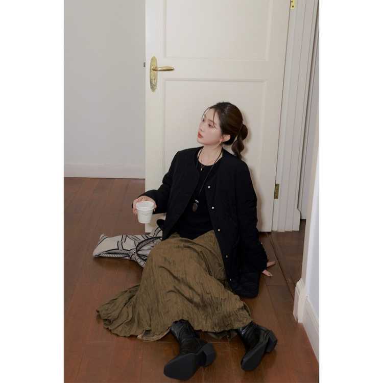 COOLHUT 复古加厚巴恩风中长款棉服外套复古简约保暖2025冬季女式棉衣