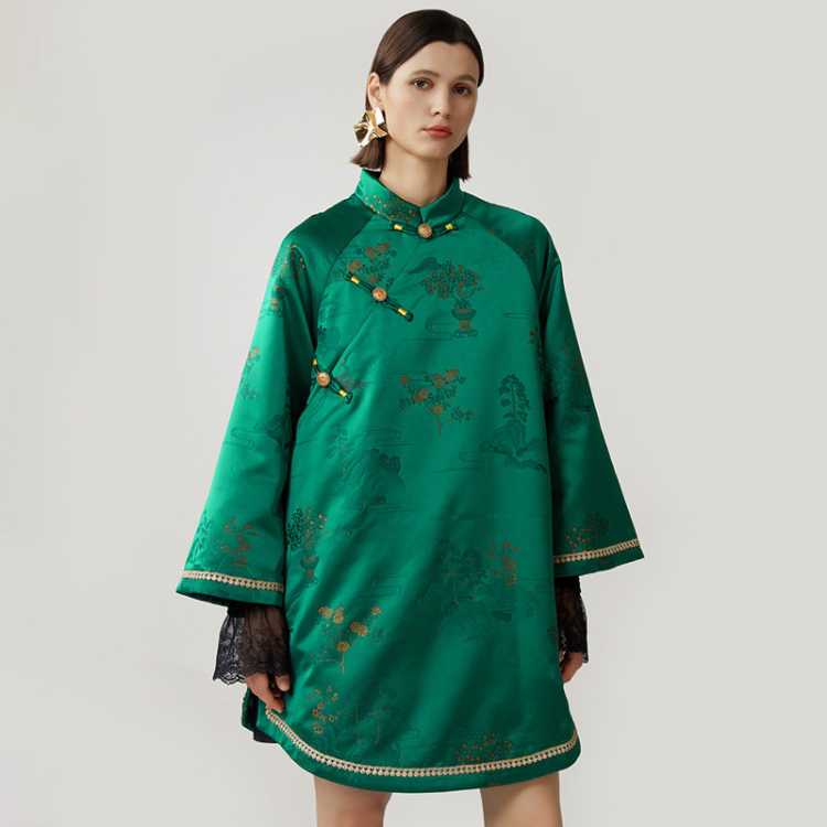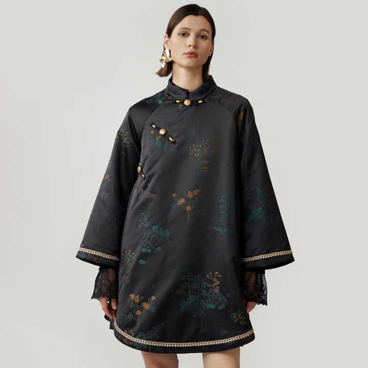 轮廓 松鹤延年新中式提花棉服典雅气质时尚通勤保暖棉衣女