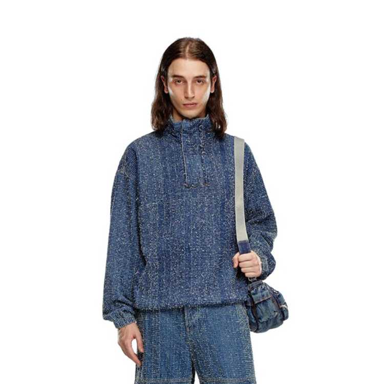 DIESEL 秋冬季【复古手工】立领宽松牛仔纯棉卫衣毛须磨破做旧套头衫