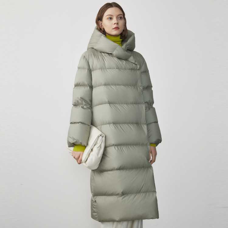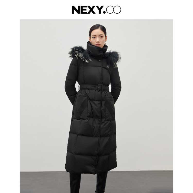 奈蔻 【保暖鹅绒】冬季简约通勤连帽毛领长款羽绒服外套女