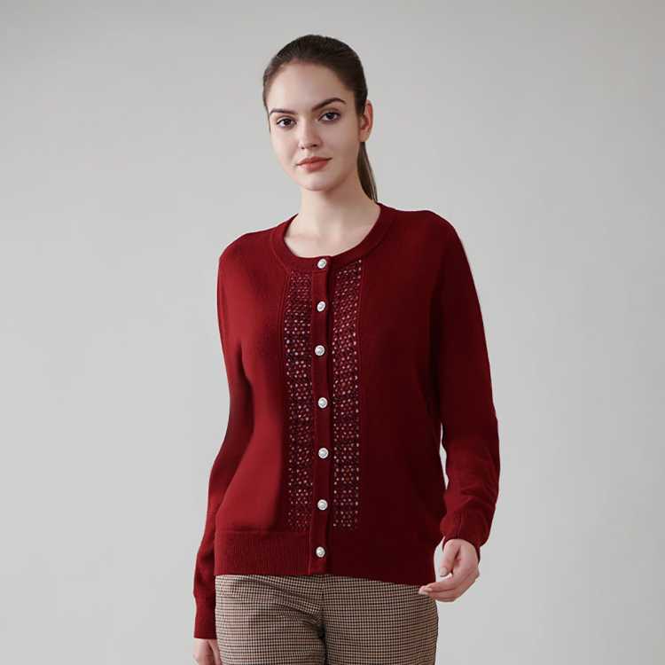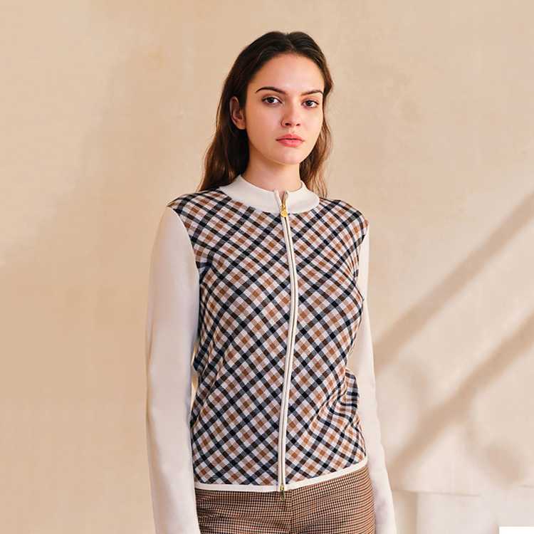 AQUASCUTUM 【经典高奢】秋冬女士纯色格纹舒适英伦风针织开衫