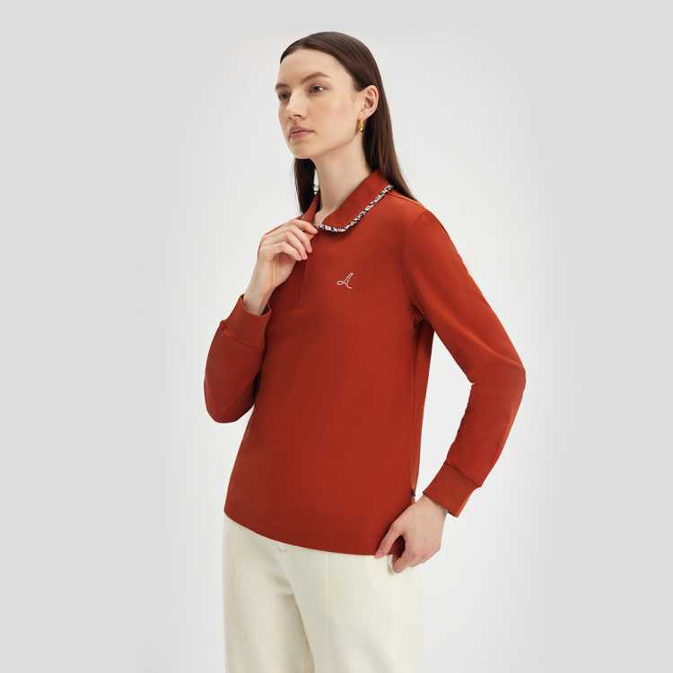 AQUASCUTUM 【经典高奢】秋冬女士商务休闲纯棉长袖翻领POLO