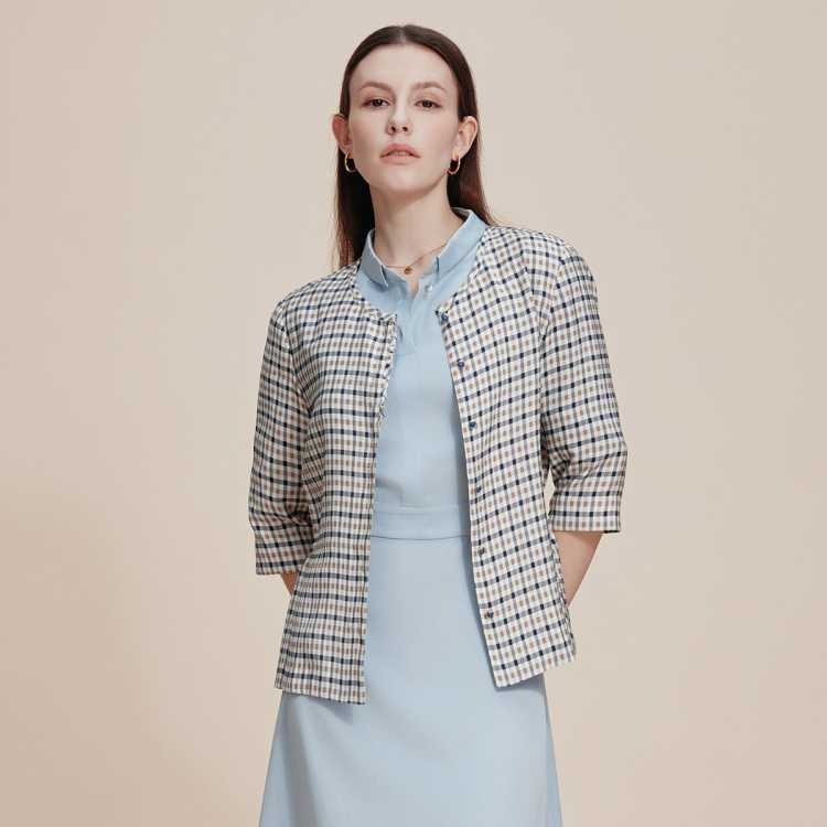 AQUASCUTUM 【经典高奢】春夏女士格纹七分袖短款外套时尚