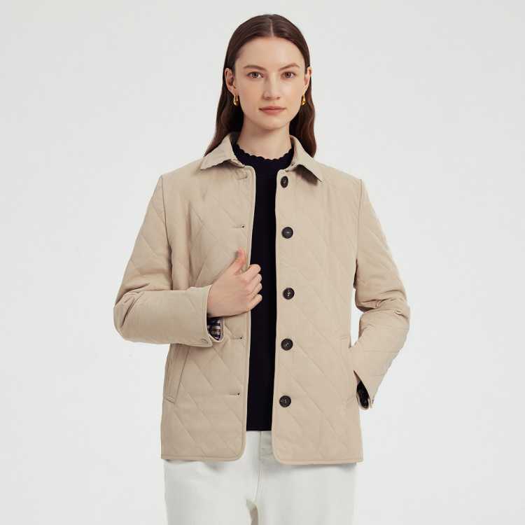AQUASCUTUM 【经典高奢】秋冬女士简约休闲菱格翻领棉服外套