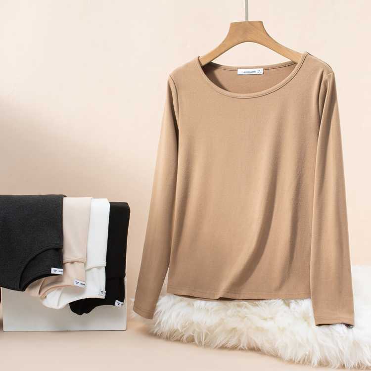 真维斯 打底衫女秋冬季圆领纯色舒适多色可选街头约会百搭长袖上衣