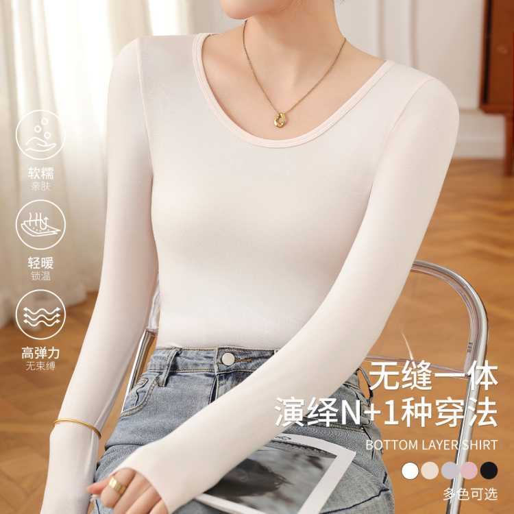 浪莎 【肌底衣 轻薄高弹】打底衫亲肤贴身女士保暖内衣上衣女秋衣女士