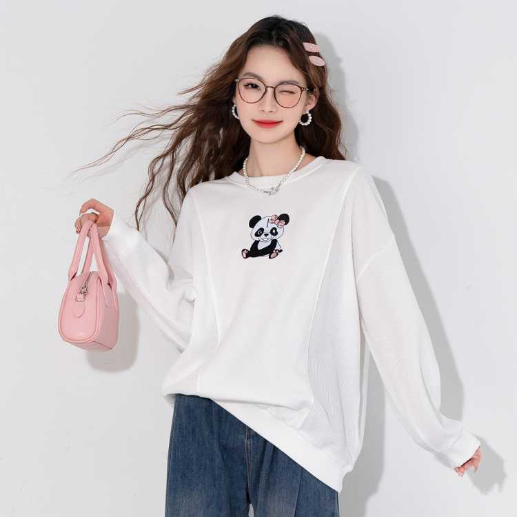 真维斯 春秋款女款运动休闲动物卡通卫衣潮流百搭宽松圆领通勤风