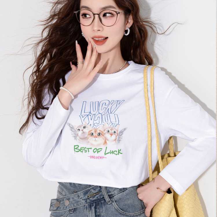 真维斯 春秋棉感舒适透气时尚潮流百搭长袖T恤简约动物字母印花T恤