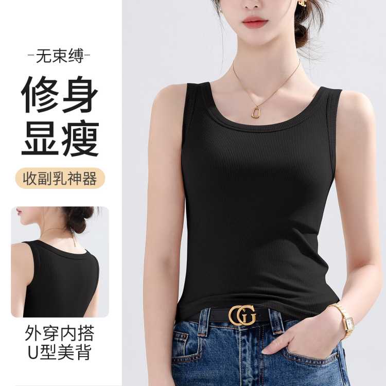 浪莎 【基础百搭】高弹力遮副乳螺纹显瘦美背打底背心女内搭外穿吊带