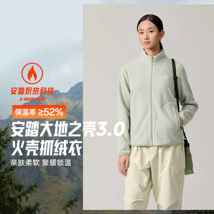 安踏 火壳抓绒衣丨大地之壳3.0女冬季保暖内胆衣立领外套运动上衣女