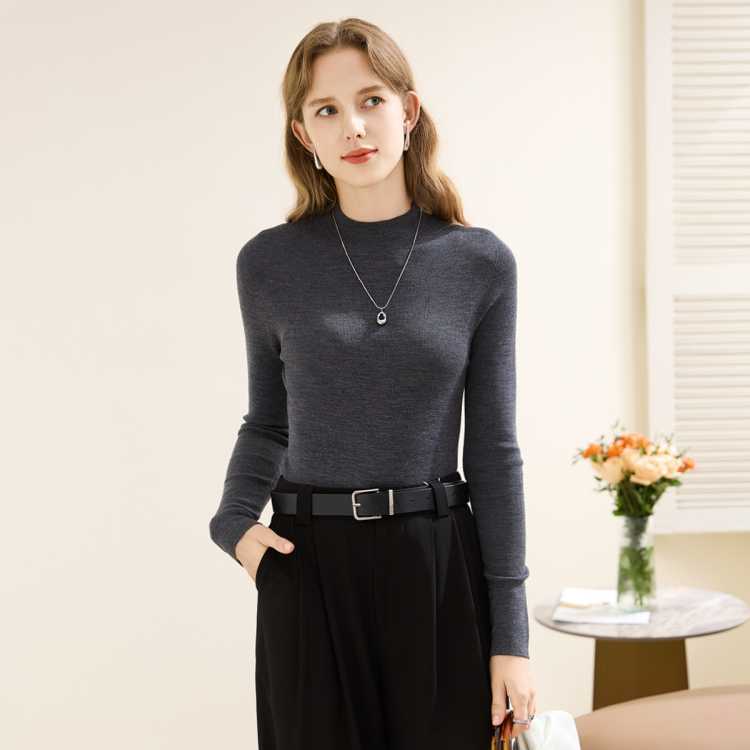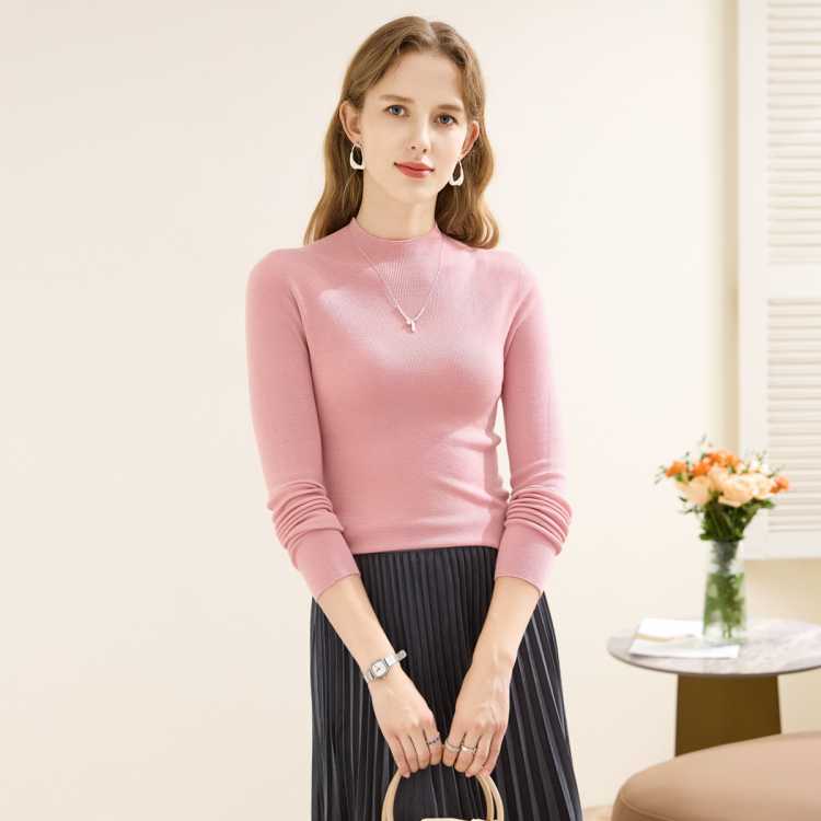 兔皇 【85支精纺纯羊毛】无缝一体知性秋冬针织半高领女羊毛衫