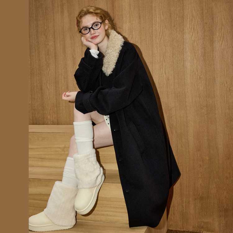 COOLHUT 极简风长款廓形过膝加厚保暖毛领呢子2025冬季女式大衣外套