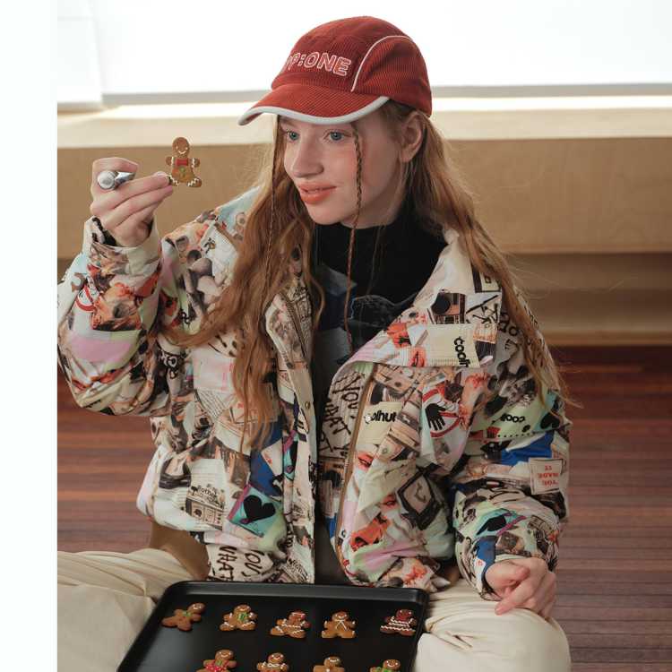 COOLHUT 多巴胺涂鸦花色满印学院风90绒休闲2025冬季女式羽绒服