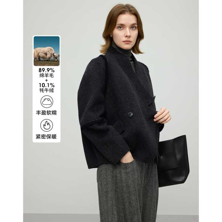 恒泽 25秋冬新款高级感气质风斜设计羊毛大衣时尚通勤短款毛呢外套女