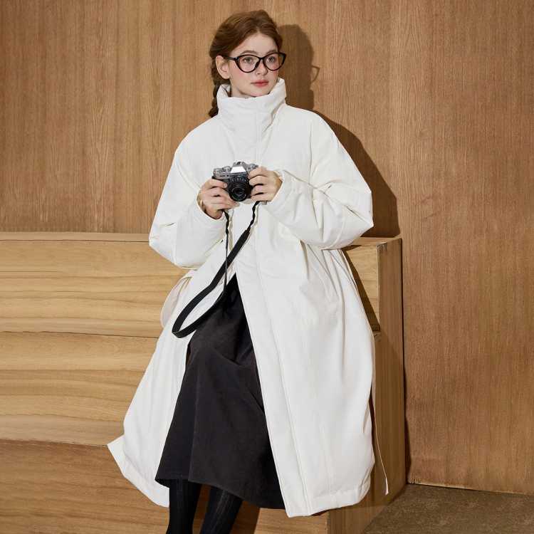 COOLHUT 韩版立领长款风衣宽松保暖腰带气质90绒2025冬季女式羽绒服