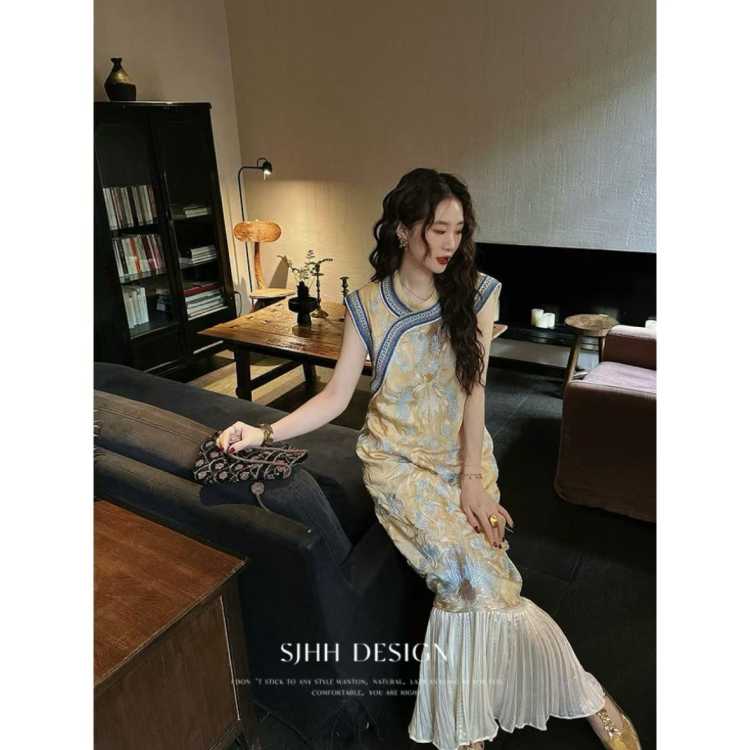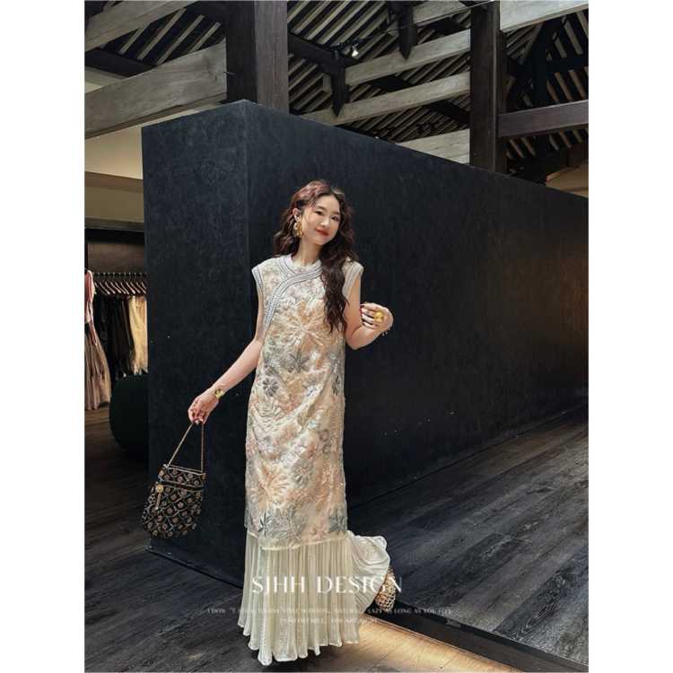 三吉黑花 【凝妆】新中式国风连衣裙子2025新款重工绣花背心旗