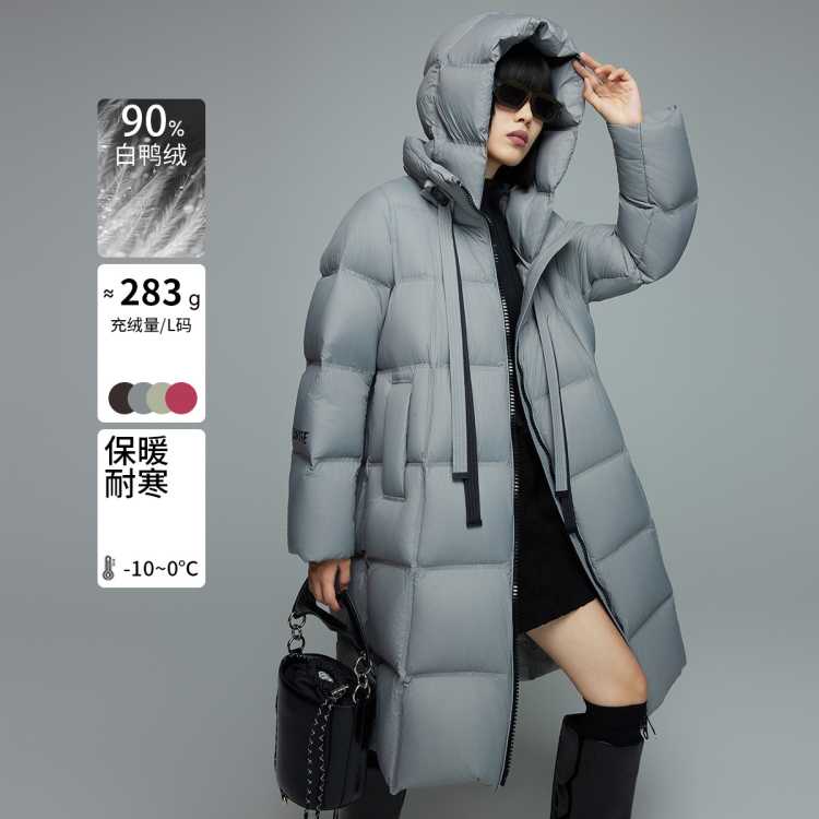 迪赛尼斯 冬季通勤气质极简宽松长款白鹅绒连帽羽绒外套女