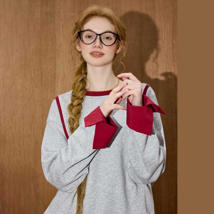 COOLHUT 宽松百搭拼色抽绳休闲显瘦宽松圆领2026春季女式卫衣