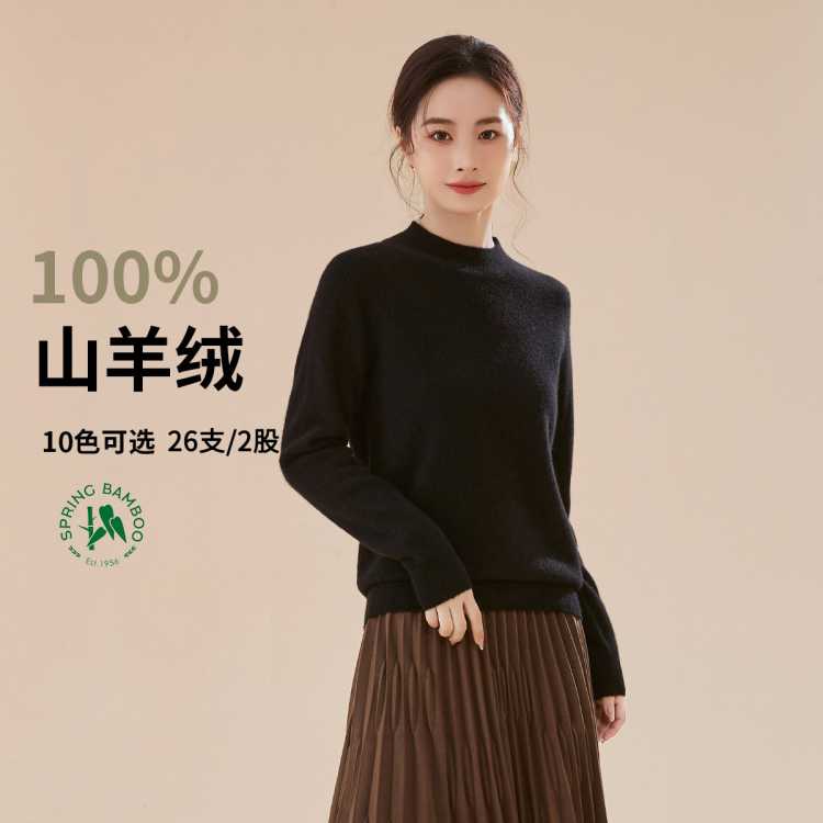 春竹 【绒入我心】100%纯山羊绒秋冬打底半高修身毛衣针织羊绒衫女