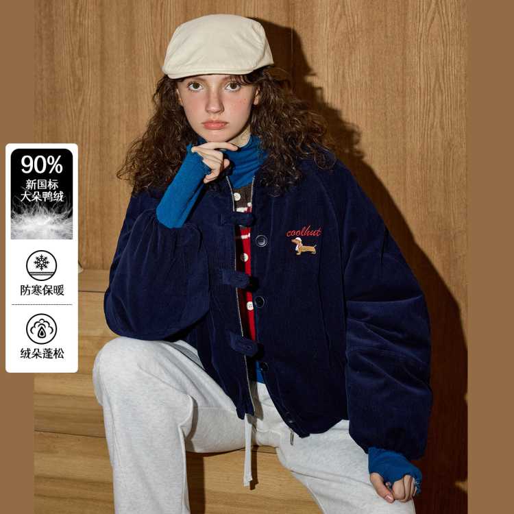 COOLHUT 复古刺绣90绒宽松夹克面包服2025冬季女式羽绒服