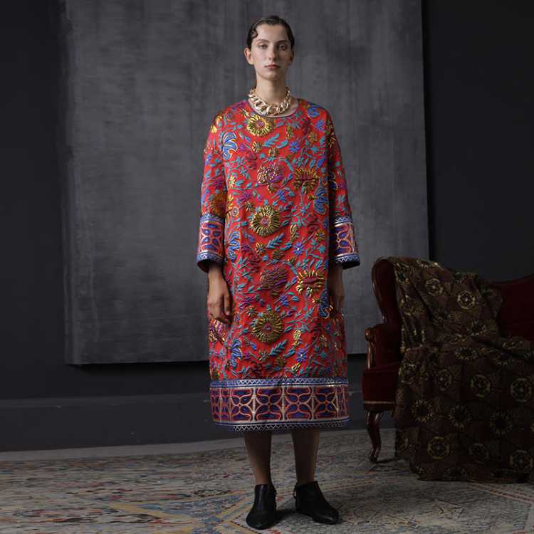 轮廓 原创设计女装民族风宽松中长裙宫廷风连衣裙春秋