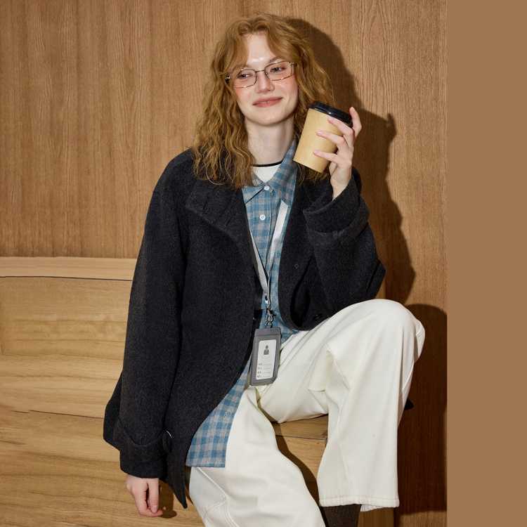 COOLHUT 高级感设计气质美拉德立领双面呢飘带含羊毛2025冬季女式大衣