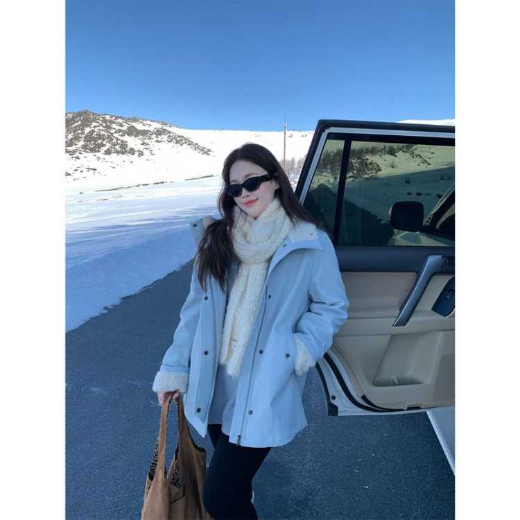 大婉酱 微胖大码女款防风立领工装棉服秋冬抗冻直下摆宽松保暖外套