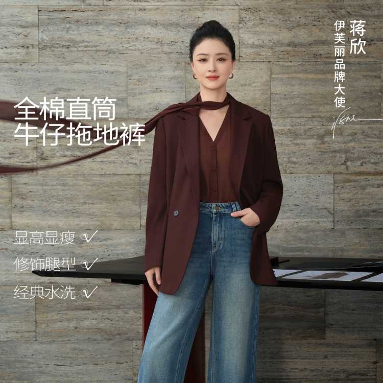 伊芙丽 【蒋欣同款】经典爆款休闲拖地牛仔裤2025秋轻怀旧水洗裤子