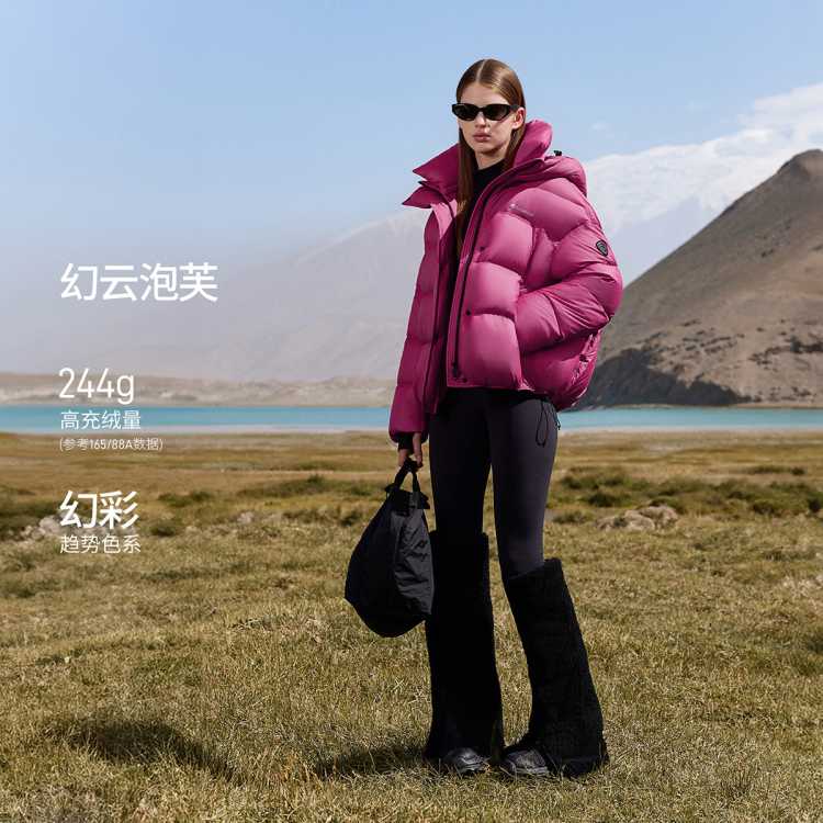 坦博尔 【周也同款】高充绒时尚泡芙羽绒服女可脱卸领宽松小个子冬外套潮