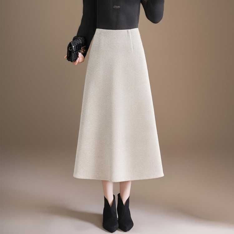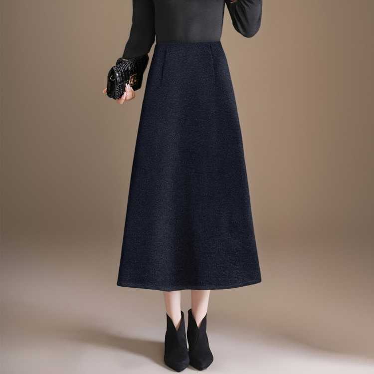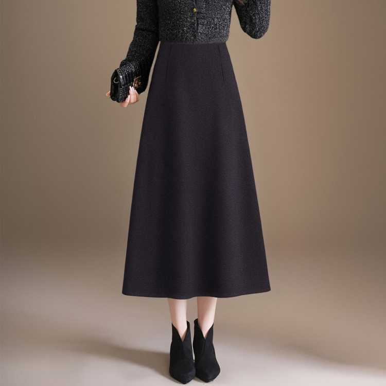恒泽 2025时尚毛呢半身裙秋冬松紧高腰显瘦气质百搭过膝A字裙女