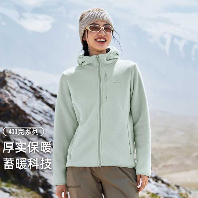 拓路者 户外登山抓绒衣女2025秋摇粒绒加厚外套连帽运动徒步开衫内胆
