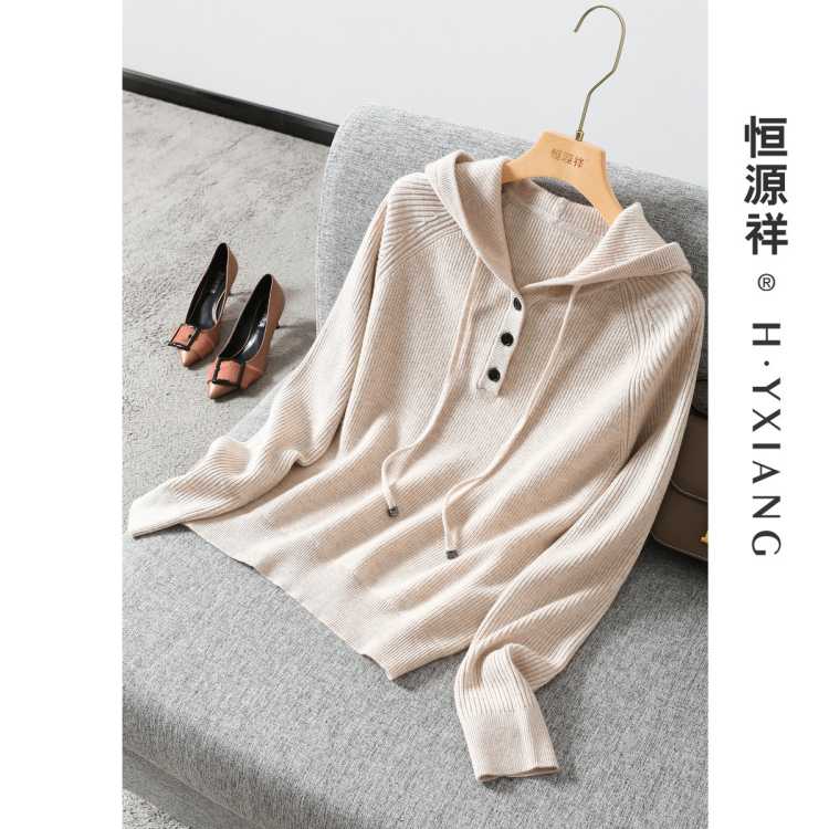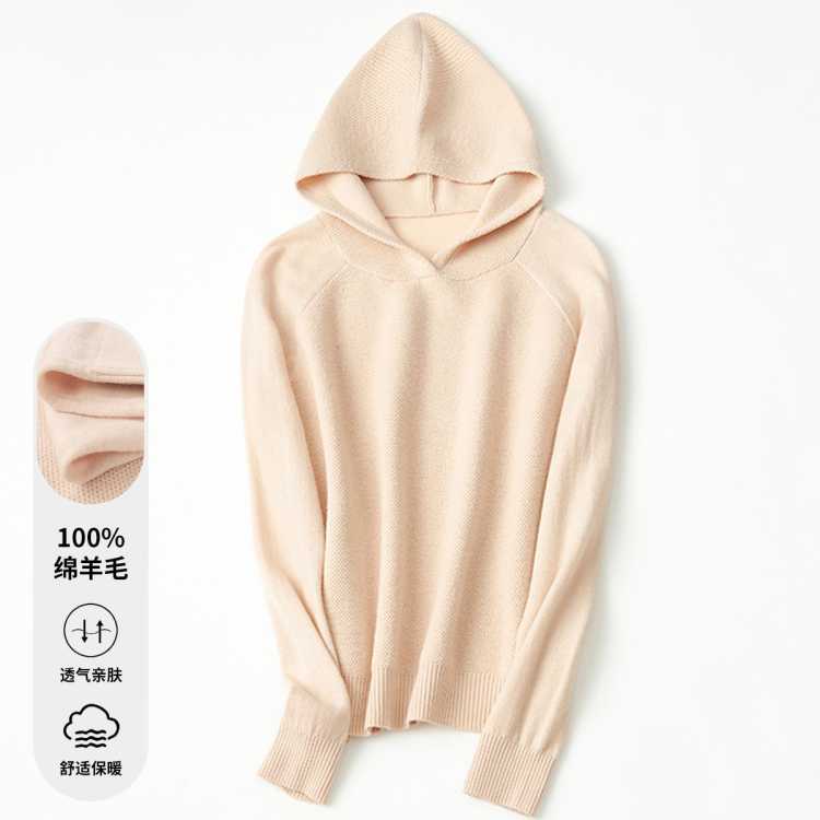 思诺芙德 100%绵羊毛~25秋冬厚款连帽休闲百搭上衣女式针织衫