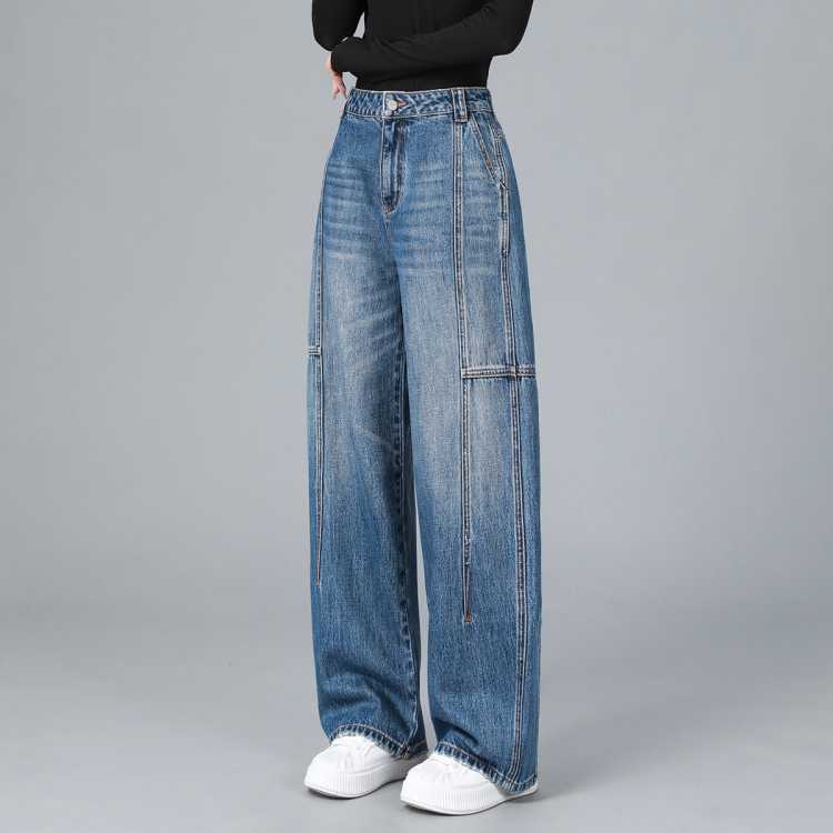 恒泽 无弹牛仔棉结构感弯刀阔腿裤无弹反而成就行走时的流动美