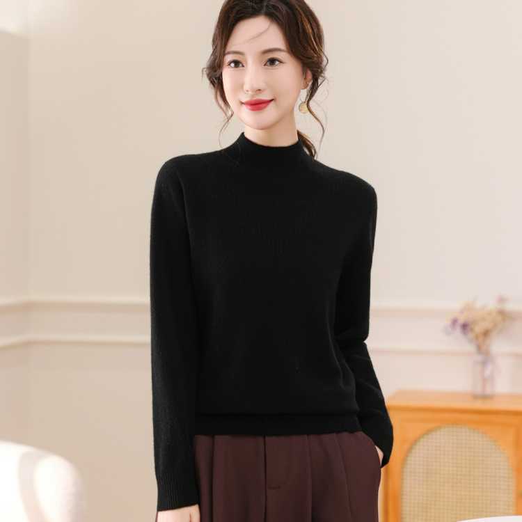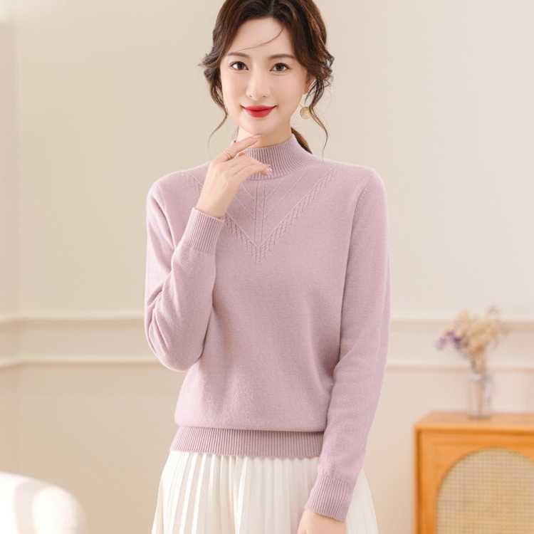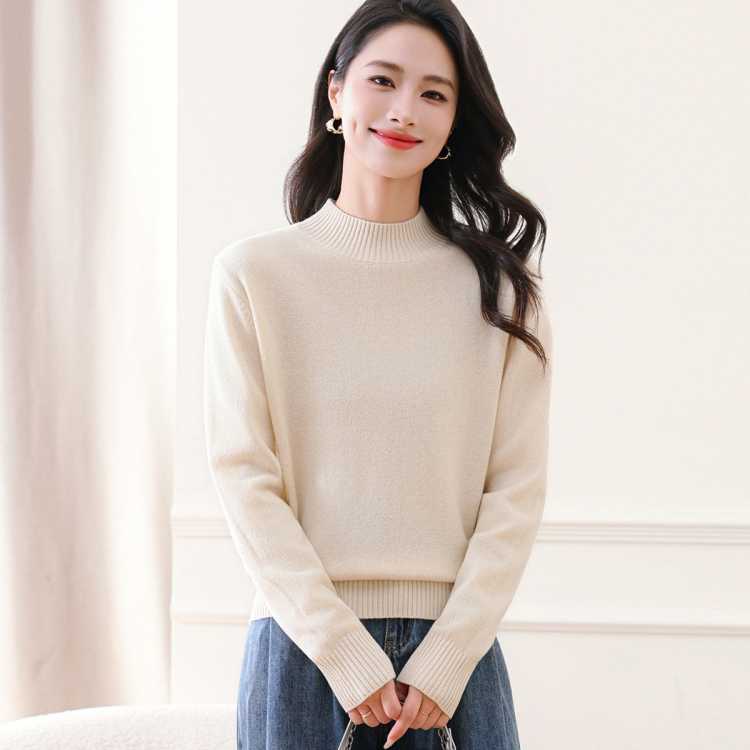 恒源祥 鸿运红品【100%绵羊毛】2025秋冬半高领极简保暖女式羊毛衫套头